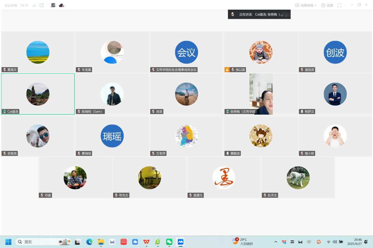 为凝聚理事会共识,推进基金设立,统筹校庆筹备及校友分会年度工作,9月27日晚,文学与新闻传播学院校友分会在线上召开一届理事会一次会议。理事会成员、学院领导及党政办公室负责人参加会议。会议由学院党委书记张艳梅主持。
