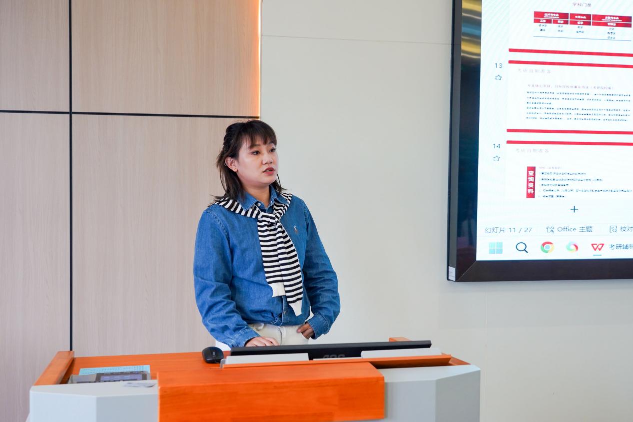 新闻系副主任李丹阳随后重点围绕复试环节进行指导。她结合多年带学生复试的经验,鼓励大家在面试时一定要大胆、自信,尤其是英语口语环节,“哪怕语法不完美,也比支支吾吾、沉默不语强百倍”。她强调,考官更看重的是逻辑表达能力、真实态度和对专业的热爱,而不是发音是否标准。常见问题(如为什么跨考、未来规划等)要形成自己的标准答案。面试时要保持微笑、直视老师、语速适中,“自信本身就是最大的加分项”。