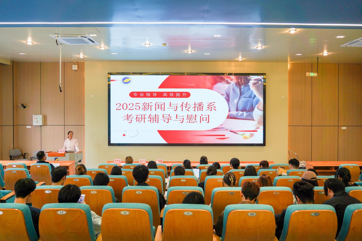为了进一步鼓舞考研学子斗志,调节考前心态,缓解备考压力,12月10日下午,文学与新闻传播学院在博文楼A302室举行了新闻系本科生考研慰问暨经验分享会。学院党委书记张艳梅、新闻系主任王子昕、新闻系副主任李丹阳、网络与新媒体教研室主任刘钟瞳、辅导员吴思莹,以及2026届全体考研学生与2025级在读研究生参加了活动。会议由王子昕主持。